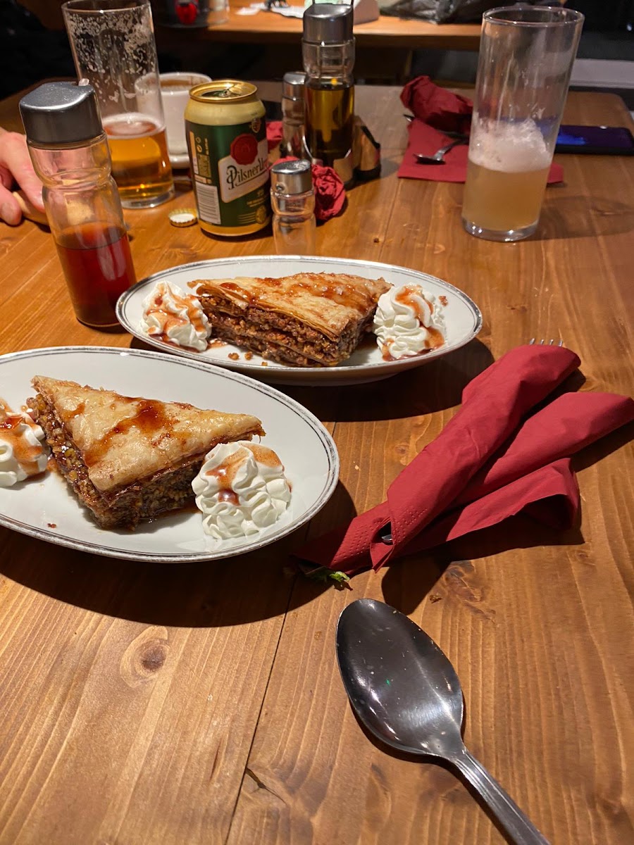 When it comes to drinks and desserts, Rousta’s isn’t playing games. The Turkish coffee packs a bold punch, while the Saffron Pistachio and Rose Water Ice Cream is as unique as it is refreshing-fragrant, floral, and beautifully presented. Traditional sweets like baklava and kataifi are also available, flaky and dripping in honeyed goodness. It’s the kind of dessert that makes you forget your name for a second.