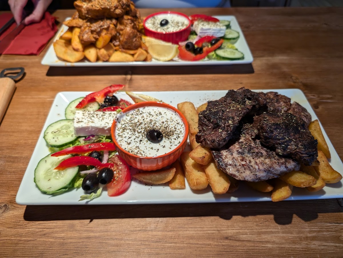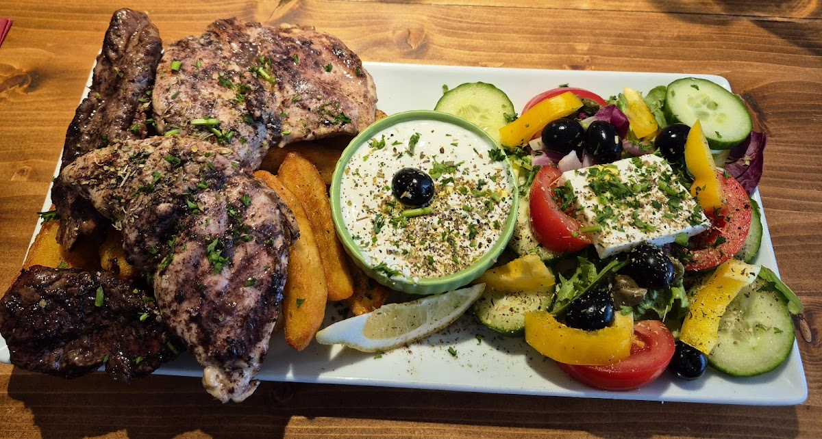 Let’s talk food. The Chicken and Lamb Souvlaki is a winner-grilled to smoky perfection, juicy, and served with rice and fresh salad that actually tastes like salad, not just a side filler. And if you’re in the mood for something a little more indulgent? The Lamb Gyro is rich, hearty, and absolutely satisfying. It’s got the right amount of spice, and that homemade tzatziki? Creamy heaven.